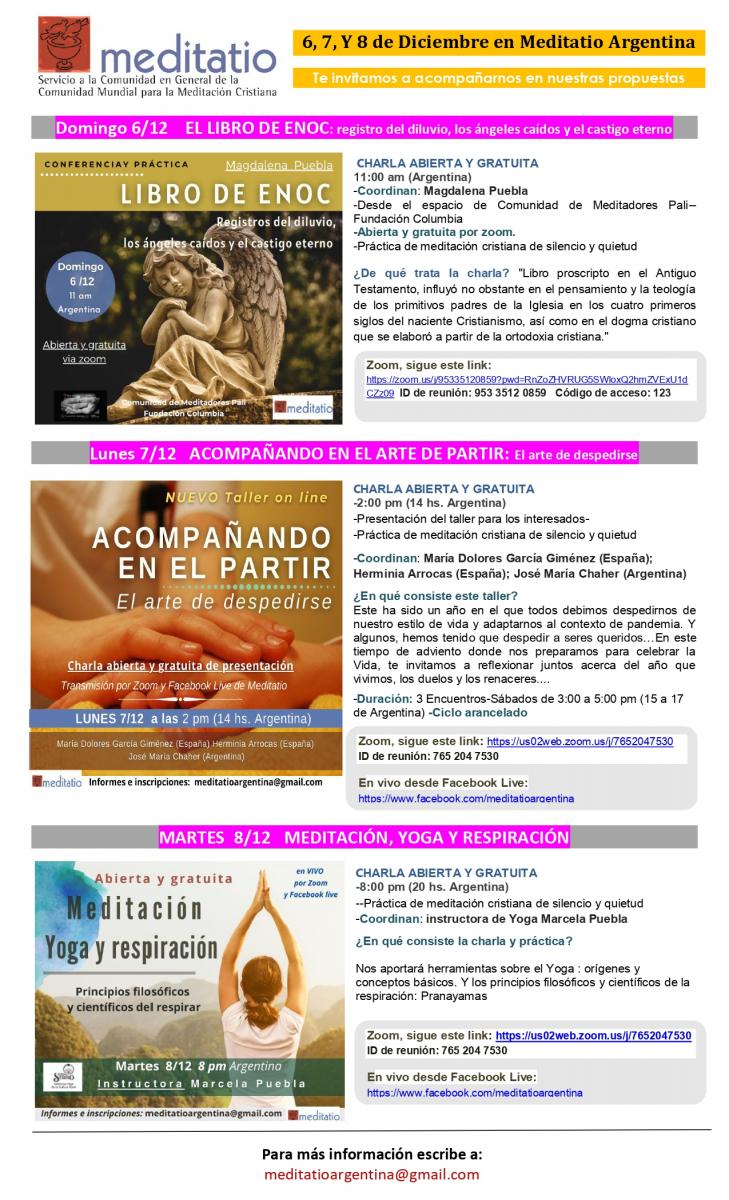Retiro organizado por la CMMC de Argentina y predicado por el P. Stefano Cartabia O.M.I. el 28 y 29 de noviembre 2020. Informes e inscripción: meditatioargentina@gmail.com