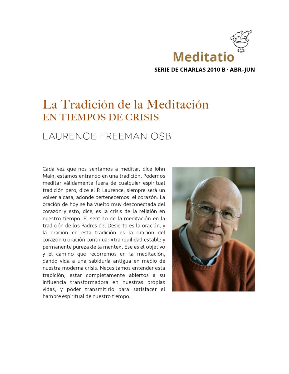 ► Transcripciones de Laurence Freeman OSB, Finding Oneself 1, Meditatio Talks 2017 C, Medio Media. ISBN 978-981-11-4862-0. (Charlas impartidas en un retiro en New South Wales, Australia, Julio 2017.
